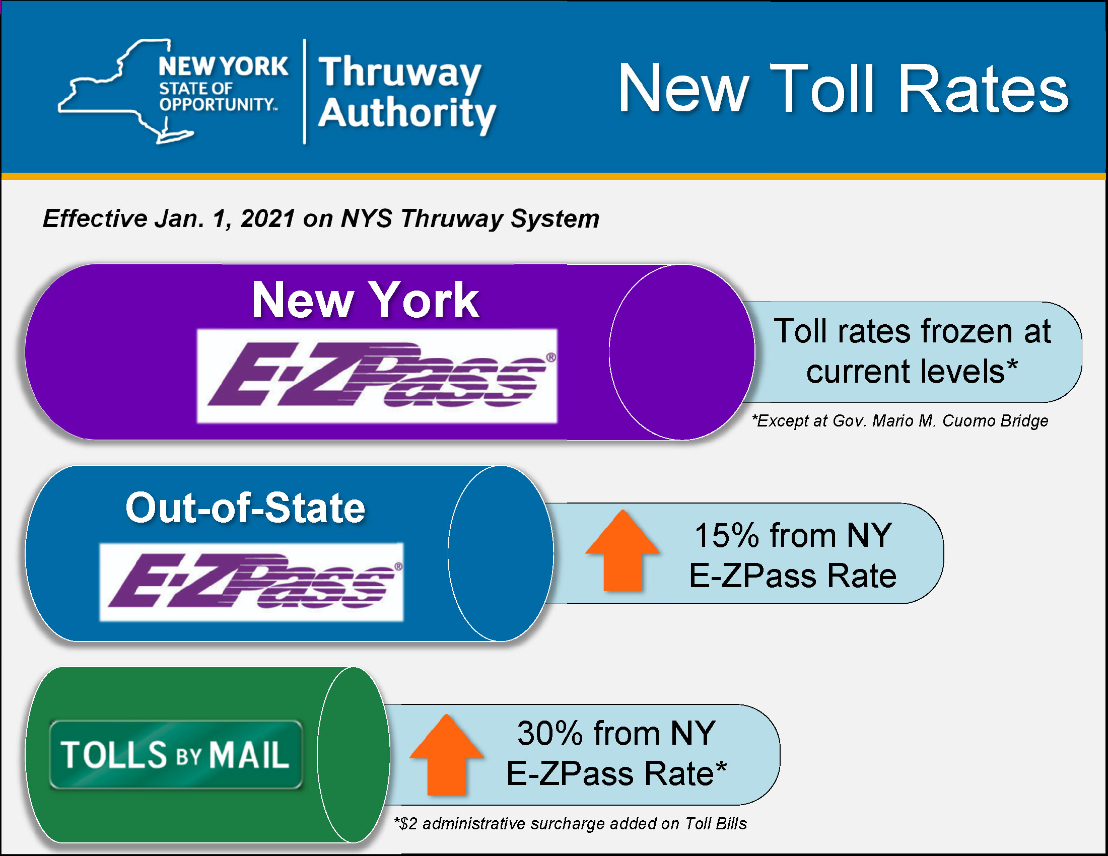New York State Thruway Authority On X Thruway Authority Board Of Directors Approves Toll Adjustment To Support Statewide Conversion To Cashless Tolling There Is No Impact To Ny E Zpass Customers Except For